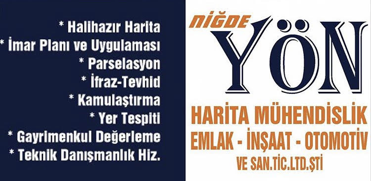 NİĞDE YÖN HARİTA MÜHENDİSLİK EMLAK İNŞAAT OTOMOTİV SAN.TİC.LTD.ŞTİ firması, bu listede 1. sırada yer almaktadır.