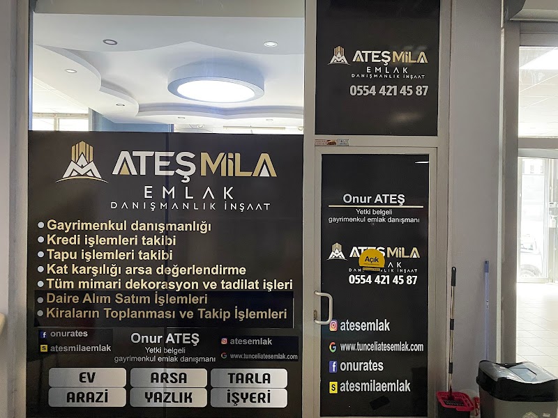 Tunceli Ateş Mila Emlak Danışmanlık işletmesine ait iletişim bilgilerini kolayca kaydedin.